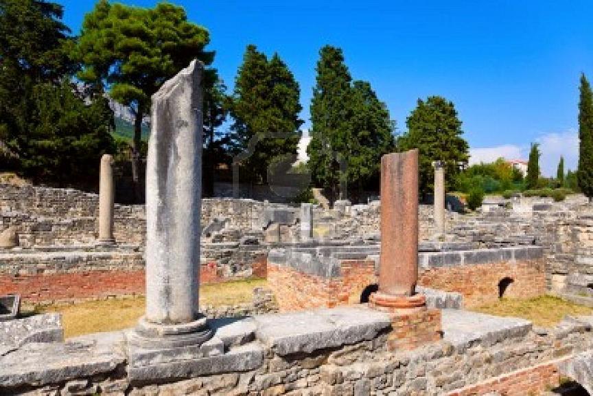 Colonia Martia Iulia Salona, was the title of the ancient Roman capital of the province of Dalmatia. It was established in a sheltered bay, at the mouth of the river Jadro under the monutain of Kozjak. The place was populated by the native tribe of Delmati and by Greek merchants who settled there before the arrival of the Italics and Romans. After the barbarian invasions, Croats settled in part of the ruined and abandoned Salona. Croatian rulers built new churches on Our Lady's island and along the river Jadro, where the centre of the Croatian Solin was established
